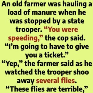 An old farmer was hauling a load of manure when he was stopped by a state trooper. “You were speeding,” the cop said. “I’m going to have…