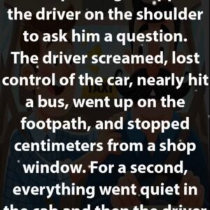 Didn’t see that coming! A taxi passenger tapped the driver on the shoulder to ask him a question. The driver screamed, lost control of the car, nearly…